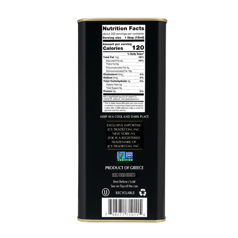 Zoe Greek Cold Pressed Extra Virgin Olive Oil, 3 Liters [Pack of 4]